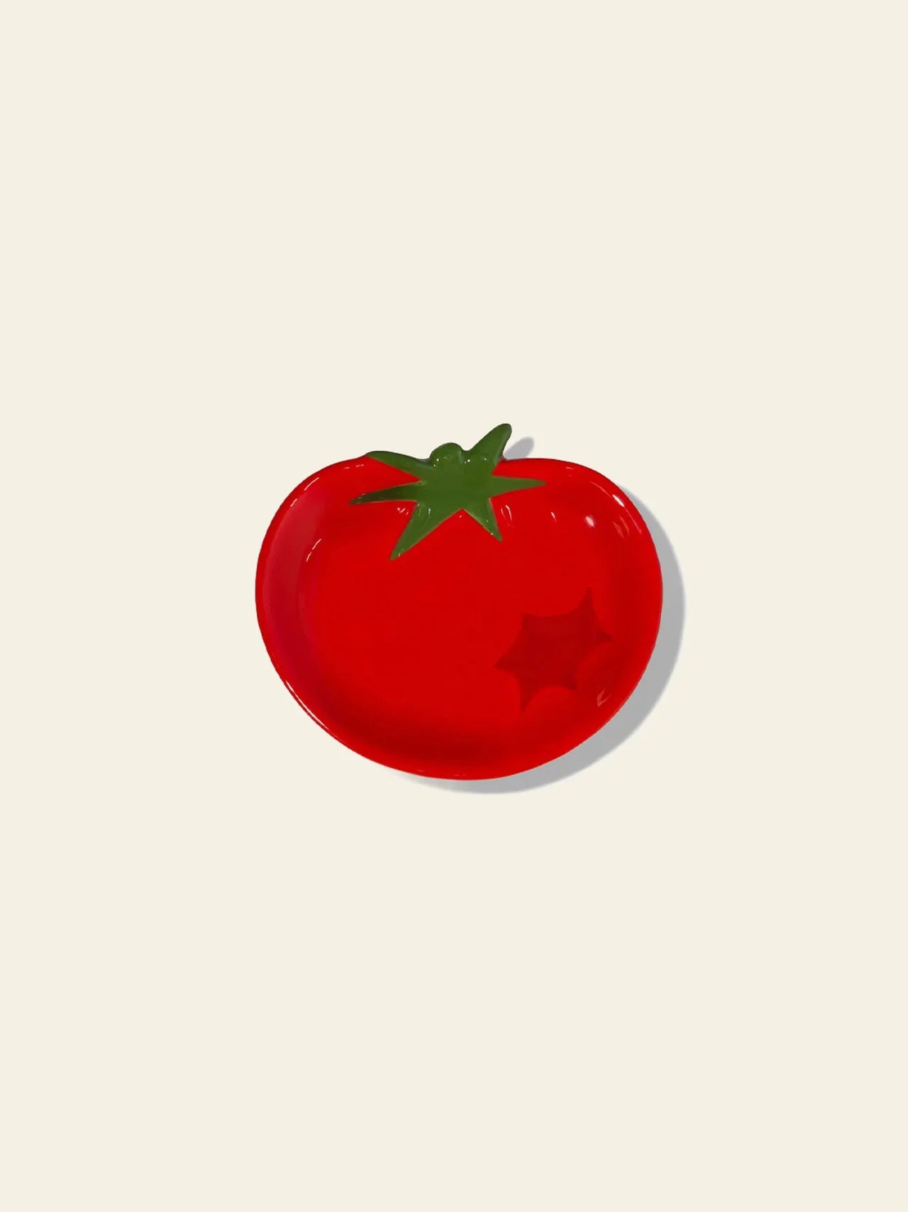 Una pequeña bandeja de cerámica con forma de tomate, lista para aportar un toque italiano a tu decoración. Ya sea sosteniendo anillos, pendientes o notas de amor, esta pieza ofrece una gran dosis de dopamina para los espacios obsesionados con el diseño.