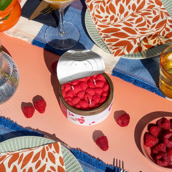 Esta vela aromática de frambuesa es un deleite para la vista y el olfato, ya que al quemarse llena tu hogar con un delicioso aroma a frambuesas dulces. Esta vela grande está hecha a mano y luce súper realista. Viene sellada en una lata, como si fuera comida de verdad. ¡Amantes de las frambuesas, es hora de abastecerse!