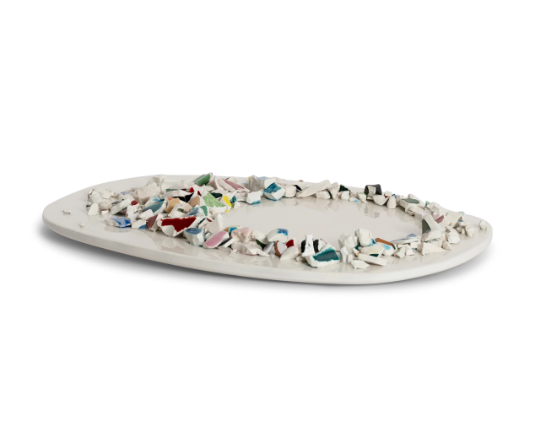 El proyecto Era nació de una investigación sobre materiales de desecho: fragmentos de cerámica vidriada que no se pueden recuperar en el proceso de trabajo. Una idea de regeneración y sostenibilidad caracteriza la obra, donde el saber hacer artesanal se acerca a nuevas formas de experimentación.