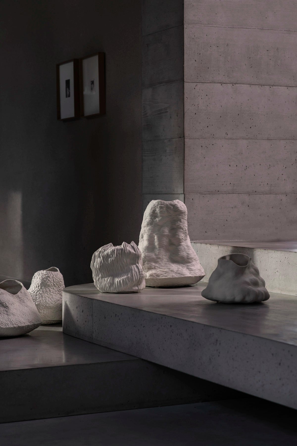 Her pieces are elegant, translucent, and delicate. Their white color symbolizes purity, while the textures express a unique personality. Toldi embraces the concept of wabi-sabi in her works and creation process, celebrating the beauty of imperfection and fragility.