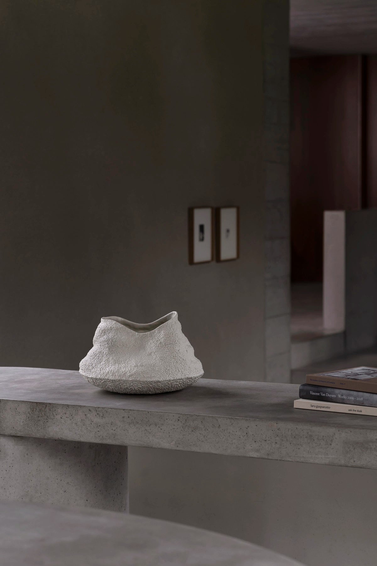 Her pieces are elegant, translucent, and delicate. Their white color symbolizes purity, while the textures express a unique personality. Toldi embraces the concept of wabi-sabi in her works and creation process, celebrating the beauty of imperfection and fragility.