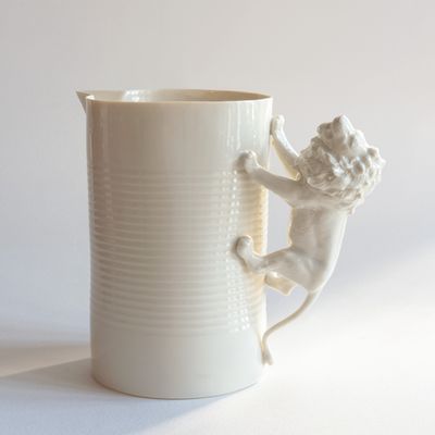This piece is part of the "use and don't throw away" collection. It is made from a 5-kilogram tin can to which an animal figure has been added to act as a handle , as a sign of respect for nature.