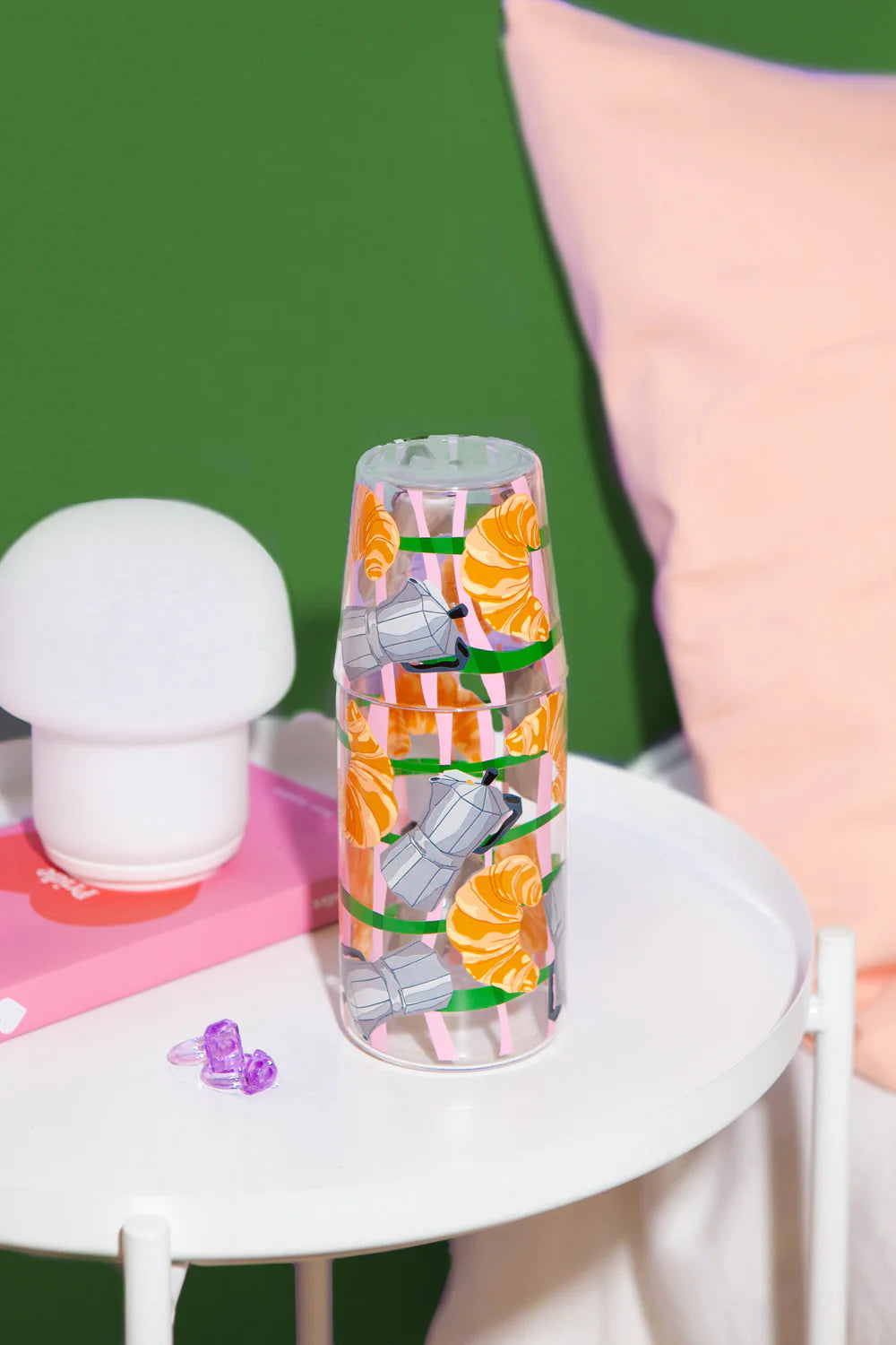 Juego de jarra y vaso con ilustraciones de iconos , que infundirán en tu espacio un regalo retro irresistiblemente delicioso.